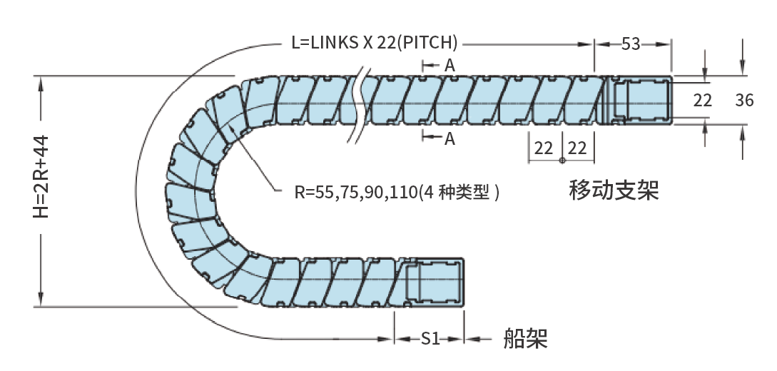 无尘坦克链(原装进口)——节距22mm:一种专为无尘环境(如洁净室、半导体生产线、医疗设备等)设计的电缆/管线保护装置,属于拖链(坦克链)的特殊类型。其核心作用是保护电缆、气管、液压管等设备在机械运动过程中免受磨损,同时避免产生粉尘或污染物,确保环境洁净度。